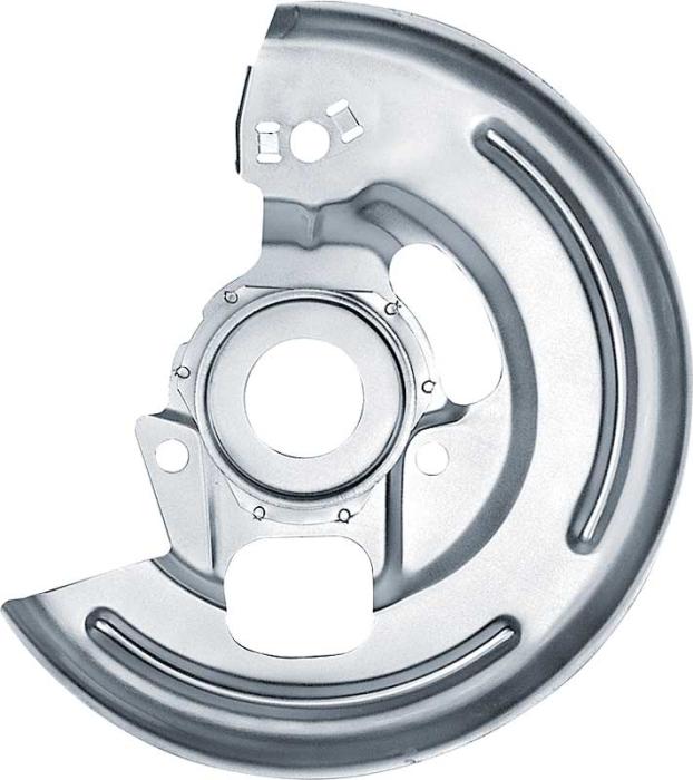 Reproduction of the original disc brake backing plates for use with various 1967-68 GM models with 4 piston caliper front disc brakes. These backing plates are manufacxtured to replciate the originals in quality and design. Includes RH and LH plates.