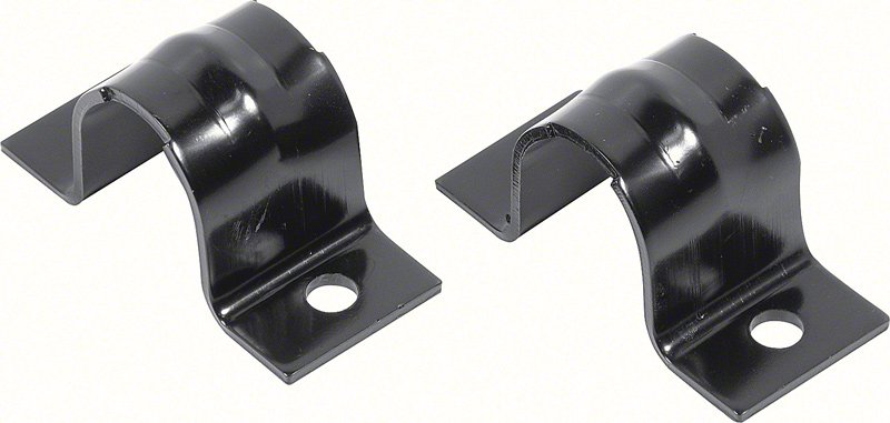 Reproduction of the original style U-shaped sway bar bushing clamps designed for use on various 1967-69 GM models. These factory correct reproductions are used to hold the inner sway bar bushings and the sway bar to the subframe. Manufactured in stamped steel, this is a cosmetically correct reproduction of the original sway bar bracket. Comes in black EDP coating for rust prevention. Sold in pairs.
