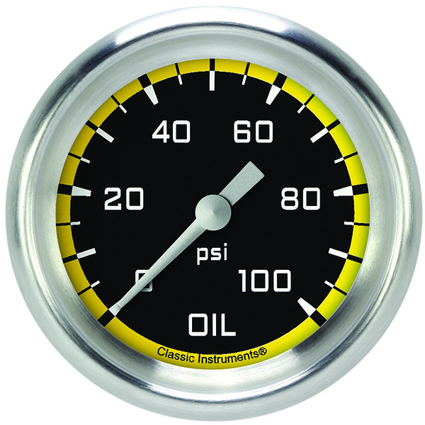 Classic Instruments Autocross Yellow 2 5/8" Oil Pressure Gauge AX381YAPF