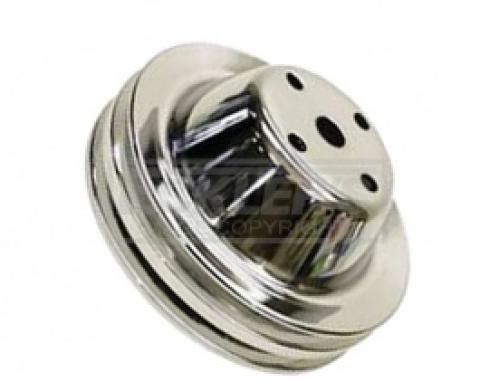 High Quality Replacement Water Pump Pulley Stamped Steel HIghly Polished Chrome Diameter: 7.10 Bolt Circle: 1.75 Depth: 2.75 Keeping your 1962, 1963, 1964, 1965, 1966, 1967, and 1968 Nova or Chevy II engine pulleys in good working order is…
