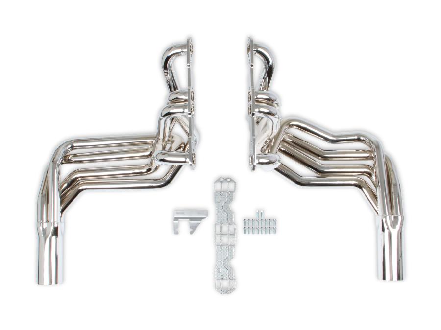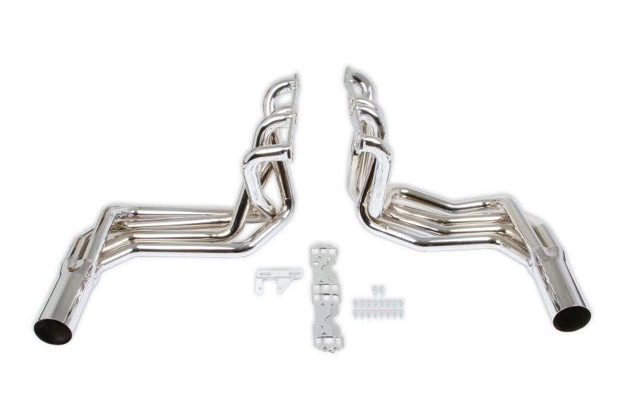 Breaking in an engine with ceramic coated headers WILL result in damage to the coating and will VOID all warranties. Hooker recommends using cast iron exhaust manifolds or old headers during your engine break-in period to avoid damaging your coated damage. Please call Hooker tech service at 270-781-9741 for additional information regarding ceramic coated exhaust products. The use of header wraps can cause the header tubes to crack or rust due to excessive heat and moisture build-up. Hooker does not recommend the use of header wraps as this will void the warranty. Hooker long tube headers do not come with header reducers.