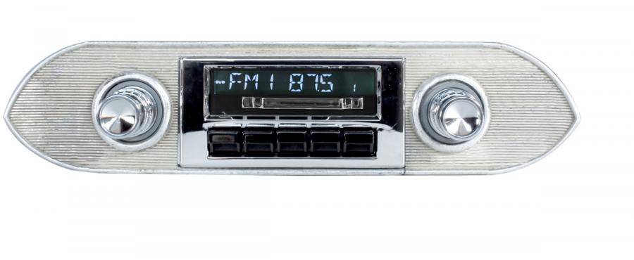 IMPORTANT: Electrical items are covered by a 30 day EXCHANGE ONLY WARRANTY. There are no returns or refunds on such items.Custom Autosound's Slidebar Radio provides enthusiasts with a completely authentic looking classic car or truck stereo without sacrificing the latest in technology. Best of all it will fit in your vehicle's dash without any modifications required. The Slidebar Radio provides the best of both worlds, a true working slidebar display and a full-featured digital display in the same stereo. Simply slide the bar in the center of the radio to the right and hide the analog slidebar revealing a full-featured digital display underneath. The slidebar is designed with large OEM style push-buttons to compliment the look of your classic car. Its digital display provides seven backlit color options designed to match the color of your dash instrumentation. When it comes to technology the Slidebar is designed with the best features available including Bluetooth, a USB input for flash drives and a Dock for your iPod. When connected to these devices the radio's digital display will display artist, song, album and allow song navigation through the radio itself. The slidebar is compatible with AD2P which enables bluetooth streaming from your enabled phone or device as well as hands-free mobile calling through the vehicles speakers & built-in microphone. With 300 watts peak the radio provides plenty of power but additionally contains four pre-outs and one subwoofer out. The Slidebar also comes with Aux-in for optional satellite radio as well as our optional compact CD/DVD player.