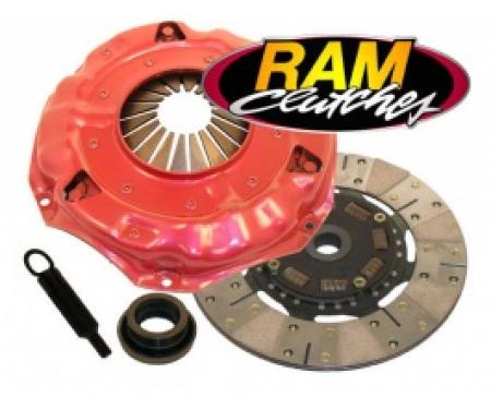 Increased Clamp Load Pressure Plate Provides Smooth Clutch Engagement 11 x 1/8-26 Spline Kit Includes Pressure Plate, Clutch Disc, Throwout Bearing & Alignment Tool As power levels move up to and beyond 500 horsepower. RAM POWERGRIP meets the challenge with a combination of organic and metallic disc friction surfaces that effectively increase the clutch capacity to the 550 horsepower level. The 8-spring hub is equipped with RAM POLYCOIL damper springs encapsulated in polyurethane. This spring can handle three times the shock load of just the coil spring, and is standard in all RAM competition discs. The RAM Competition pressure plate in this kit provides 30% more clamp pressure than stock, and meets SFI specifications. At this high level of performance RAM POWERGRIP provides surprisingly good driving characteristics with smooth, comfortable driver control. Sets include pressure plate, disc, release bearing, and alignment tool unless otherwise noted.