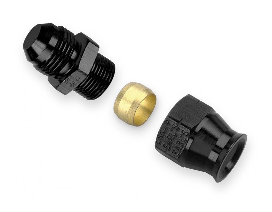 Earl's Performance AN to tube adapter fittings are manufactured from quality aluminum. These adapter fittings were originally designed to meet the needs of the racing industry, but will work with any low-pressure application to adapt aluminum, steel, copper, copper/nickel, or stainless tubing to AN-type fittings.
