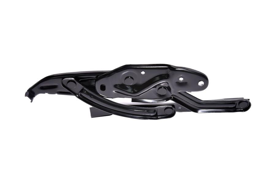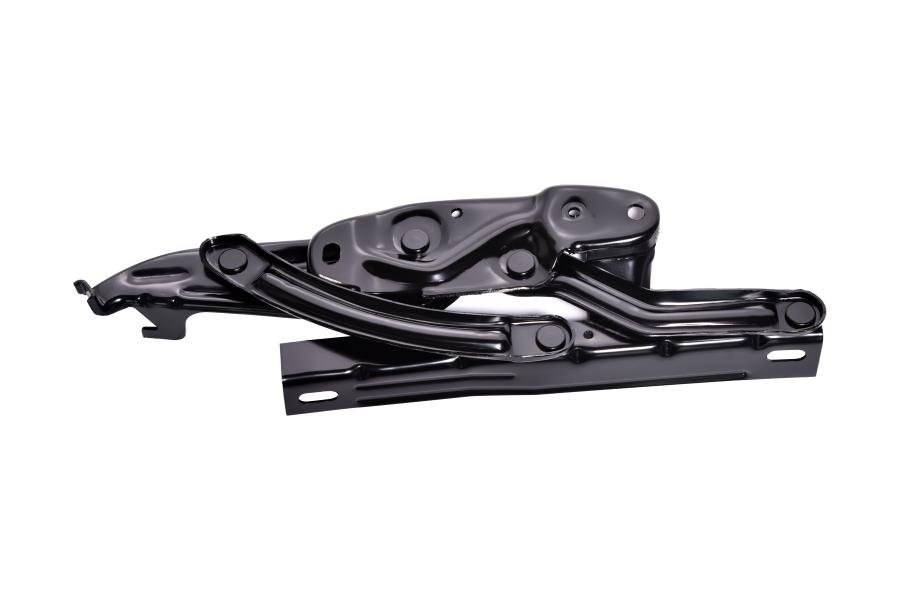 Instructions: Secure the hood to prevent movement. Remove the existing hinge by unbolting it from the hood and inner fender. Position the new hinge in place and loosely install bolts. Adjust for proper hood alignment and gaps, then tighten all fasteners. Install the spring (sold separately) and test the hood’s motion to ensure smooth, even operation.