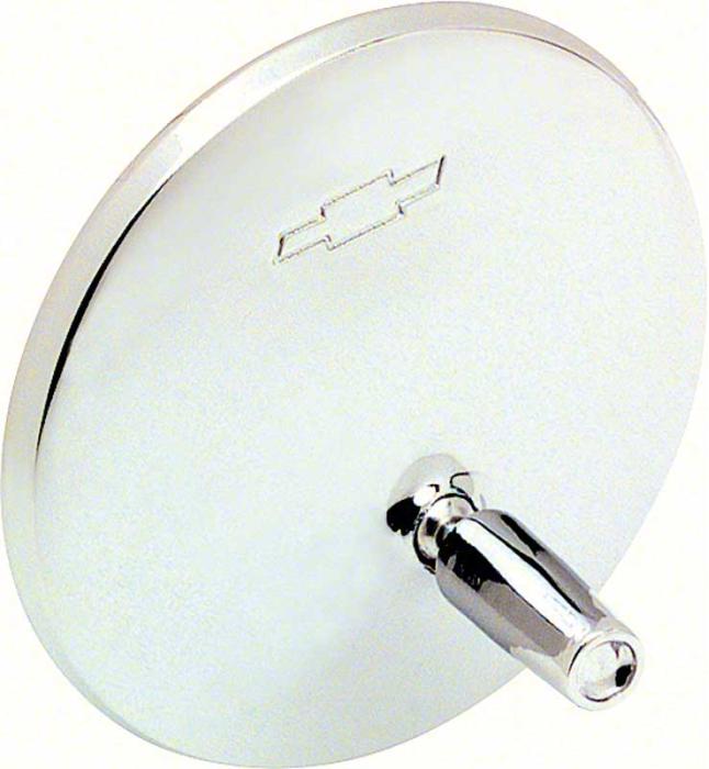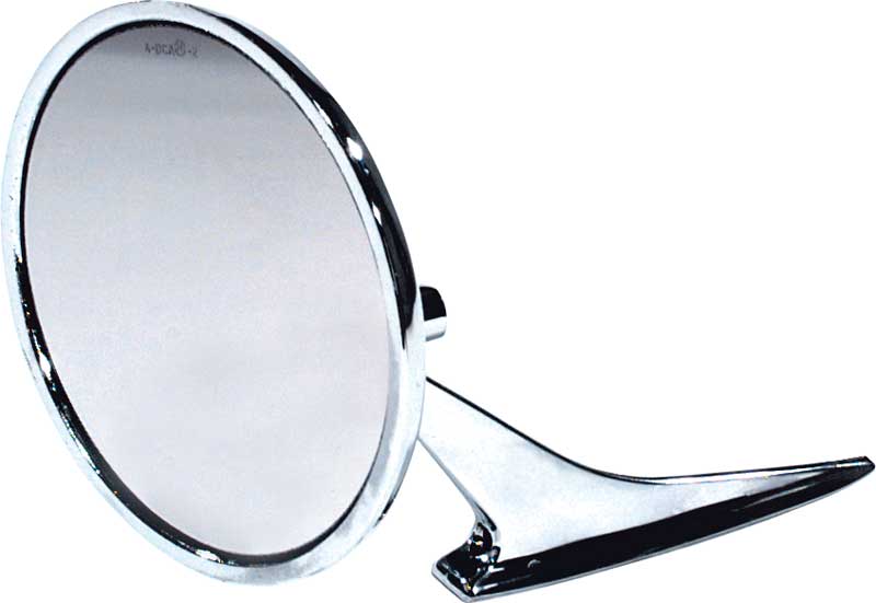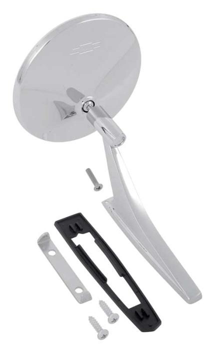 Reproduction of the original outer door mirror designed for use with various 1967-72 Chevrolet models. Each mirror is manufactured from durable die-cast zinc and finished to match factory specifications for a precise fit and authentic appearance. The mirror features the iconic Bow Tie emblem engraved on the rear housing, offering a true OEM-style detail. Includes mirror bracket, base-to-door gasket, and mounting screws for easy installation. Fits either RH or LH door. Sold individually.