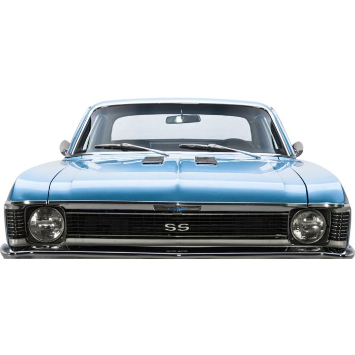 Quality reproduction of the original hood lip molding designed for use on 1968-72 Nova and Chevy II models. This precision stamped aluminum molding is manufactured to exact specifications to insure an original fit and appearance. Includes thread cutting nuts.
