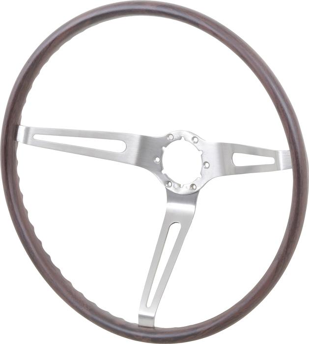 The wheel will give the appearance, feel and status of the original without the high cost of an original or NOS (new old stock) GM wheel that have been known to fetch many thousands of dollars in the collectors market. The latest manufacturing methods are utilized to ensure that this reproduction is as close as possible to the original factory GM steering wheel and features correct simulated wood wrapped around brushed aluminum center spokes.