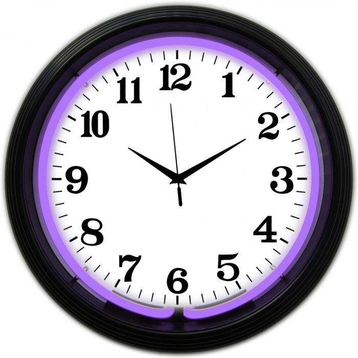 Neonetics Neon Clocks feature a hand blown ring of real glass neon, generating 25 watts of light. The neon clocks have glass faces and feature black or chrome finished, multi-tiered art deco styles rims. This clock features a black rim with a single ring of purple neon. The quartz movement clock operates on one AA battery (not included). The neon light is powered by an AC adapter (included) that plugs directly into a wall outlet. Give your home the fabulous glow of real neon!