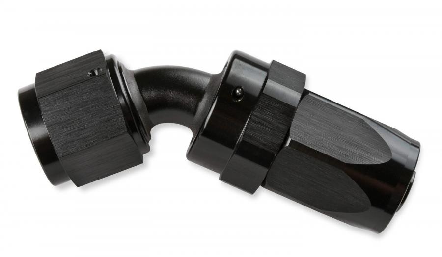 Mr. Gasket -6 an 45 Degree Swivel Hose End, Black 224506-BL