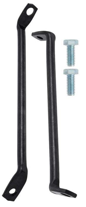 Reproduction of the original lower front fender extension braces for uses with 1968-72 Chevy II, Nova, and 1971-72 Pontiac Ventura models. The fender extension requires special stamped braces that connect the extension to the front fender. Manufactured in stamped steel to the original configuration. Includes two bolts for the threaded side of the brace only. Sold in pairs. One pair required per vehicle.
