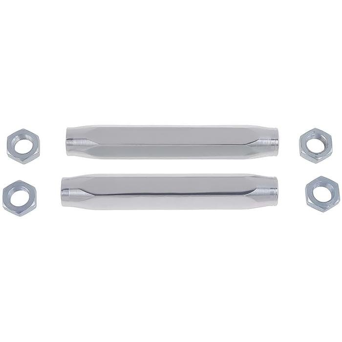 Upgrade your 1958-1964 full-size Chevrolet passenger car, 1962 Chevy II, or 1960-1964 Chevy C10, or GMC C15 pickup with these custom polished aluminum tie rod sleeves. Precision-engineered for a perfect fit, these sleeves replace worn or corroded stock components, restoring both steering performance and visual appeal. Jam nuts are included. Enhance your restoration project with parts that combine durability, performance, and classic style ? these polished tie rod sleeves are the perfect finishing touch for your vintage ride. Feature 5/8-18 thread. Length with jam nuts is 8-11/16" overall. Supplied in a polished finish.