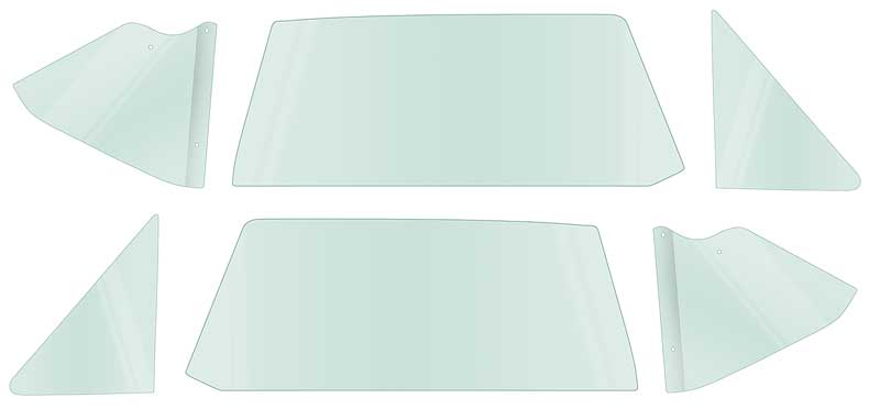 Reproduction side glass set includes the RH and LH vent window glass, RH and LH door glass, RH and LH quarter window glass.