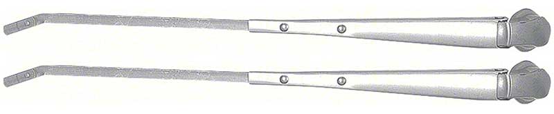 OER® reproduction of the original wiper arms designed for use on various 1962-69 GM vehicles. Each wiper arm is manufactured in stainless steel and painted, replicating the original in appearance, quality, and design. Arm measures approximately 13" from the wiper arm tip to the center of the wiper shaft. Accepts Trico or Anco blades with 1/4" bayonet-style connector. Sold in pairs.