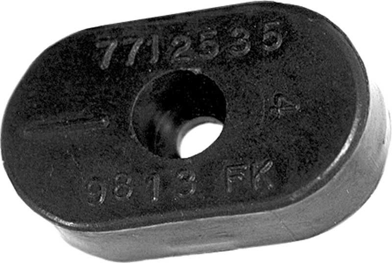 Reproduction of the original oval style seat back bumper designed for use on various 1959-79 GM vehicles. Each bumper is manufactured in hard rubber including a steel core for added strength. The bumper is installed where the back seat rests against the bottom seat. Sold individually. Use as required.