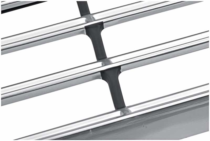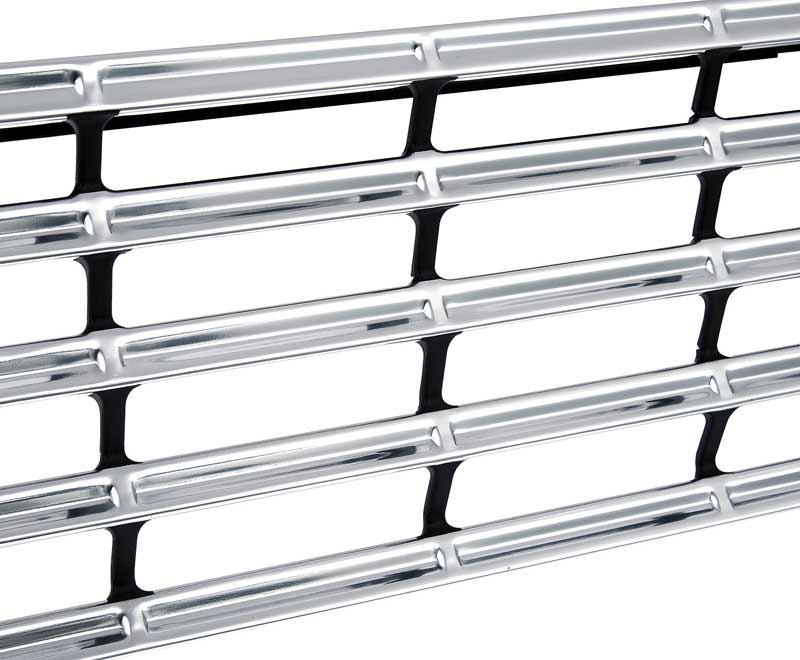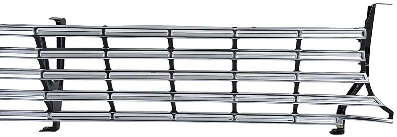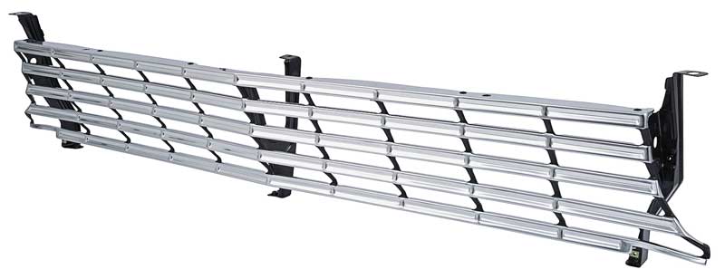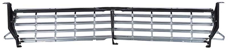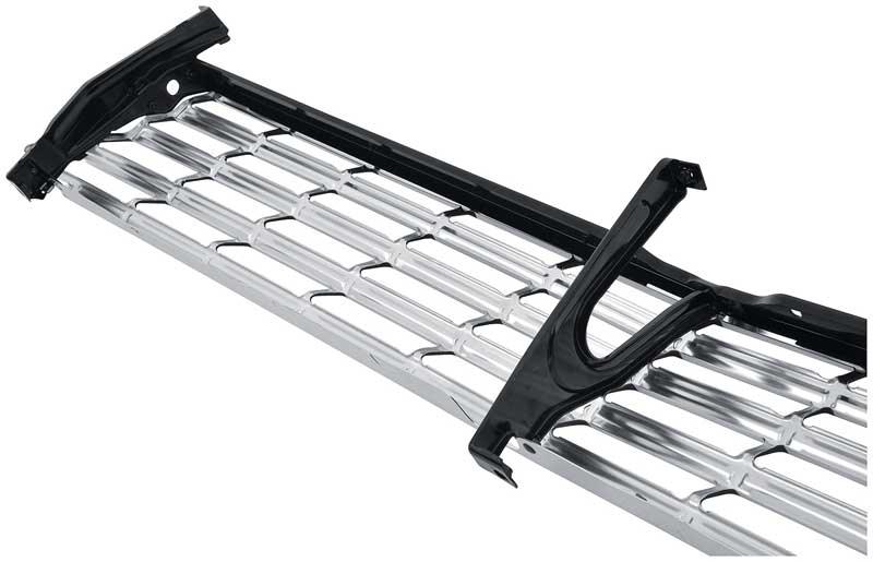 OER reproduction of the original 1963 Chevy II Nova front grill assembly. The finest reproduction on the market manufactured from all new tooling, each grill features crisp lines and a clean stamping resulting in a precise fit and factory original appearance. Grill includes 3 correctly configured steel brackets exactly like the factory original. One center bracket and 2 outer brackets come pre-installed with smooth-head rivets for an authentic appearance and easier installation. Manufactured in stamped quality aluminum, the outer grill shell is polished and coated with a clear anodization to preserve the brilliant shine and prevent corrosion. Features correct satin black sheen with careful attention paid to the masking of the accent paint for a better-than-OEM show-quality appearance. Fits all Chevy II and Nova coupe, convertible and sedan (2-door or 4-door models), and station wagon models.