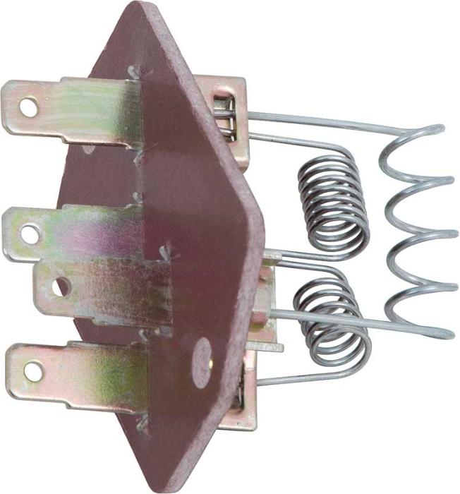 Reproduction blower motor resistor for various Buick, Chevrolet, Pontiac, and Oldsmobile models with factory air conditioning. This resistor is wired between the blower motor and blower switch and allows the blower fan speed to be controlled.