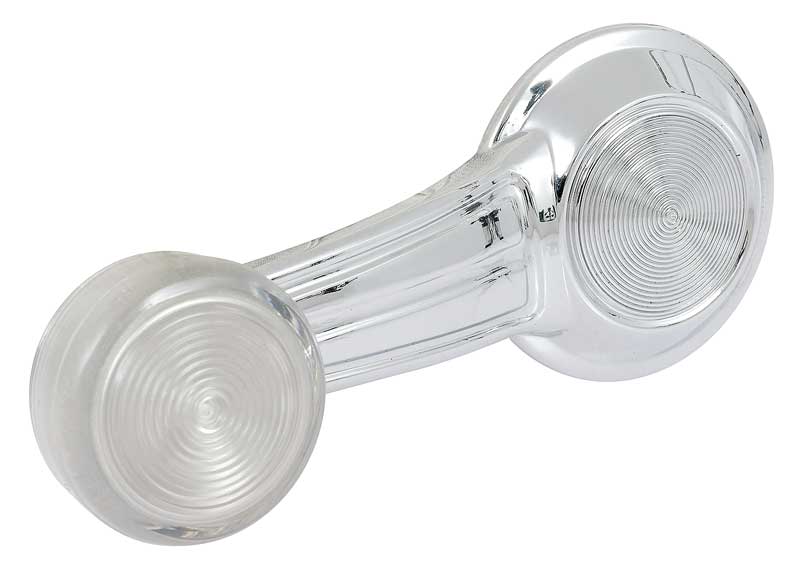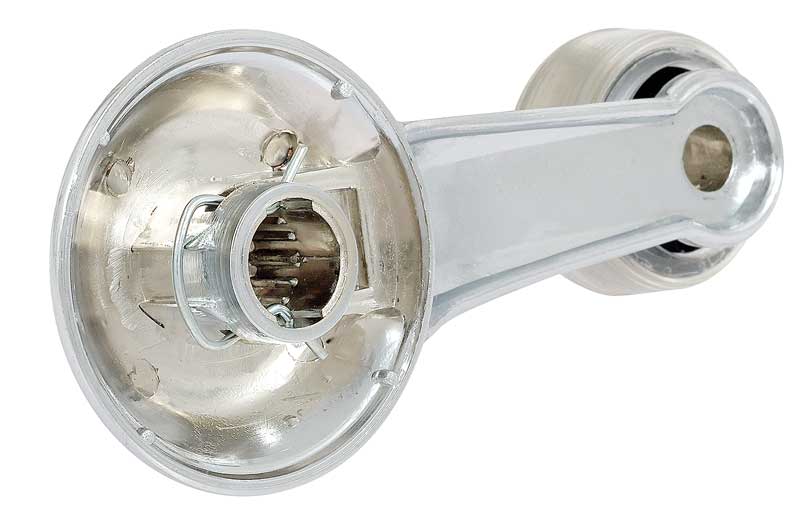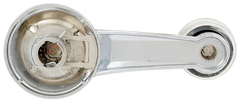 Replacement for the original inner door window crank handle designed for use on various 1965-90 GM models. Each window crank handle is manufactured in zinc die cast metal with a bright chrome finish. Features a non-riveted clear knob pre-attached to handle. Attachment clip included. Sold individually. Fits LH driver side or RH passenger side.