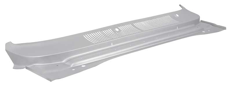 Reproduction of the original cowl top vent grill panel designed for 1966-67 Chevrolet Chevy II and Nova models. Each cowl top vent grill is manufactured in stamped steel to original factory specifications featuring correct contours for an authentic appearance and fit. This louvered sheet metal component installs directly below the windshield and behind the hood panel.