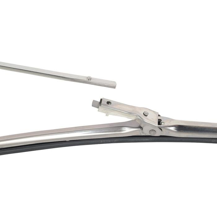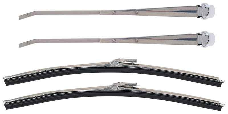 Reproduction of the original stainless steel windshield wiper arms and blades designed for 1967-69 convertible Camaro and Firebird models. Each wiper arm measures approximately 12-3/4" from center of mounting post to the bayonet style tip. Bayonet tip measures 1/4" wide while the mounting post fits 5/8" diameter shaft. Trico style wiper blades measure 15" in wiping width. Sold in a convenient set that includes 2 wiper arms and 2 wiper blades for a complete replacement.
