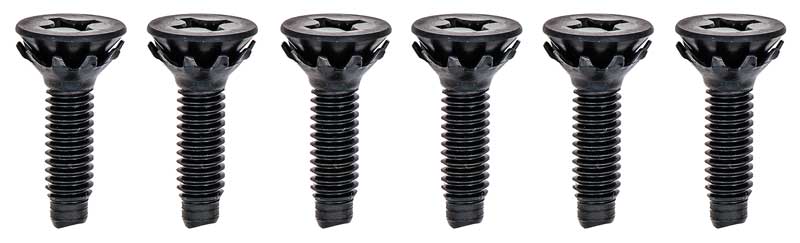 Reproduction door hinge screw set for the lower cast iron hinges on 1967 Camaro and Firebird models. Manufactured to original specifications for a proper fit and appearance. The cast iron door hinges used this countersunk phillips head screw. Each set includes 6 screws (3 screws per side on Camaro and Firebird). Also used for 1962-67 Chevy II and Nova upper and lower cast iron door hinges. 2 sets are required for Chevy II models (6 screws per side).