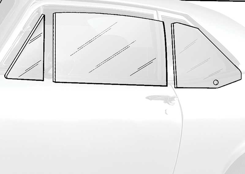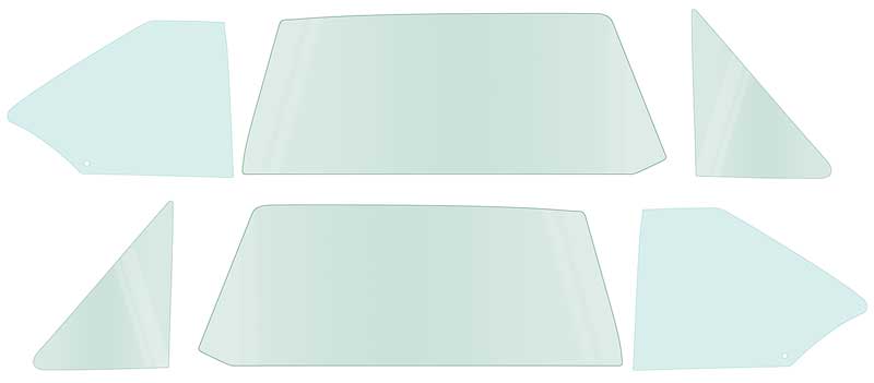 Reproduction side glass set includes the RH and LH vent window glass, RH and LH door glass, RH and LH quarter window glass. All glass panels are carefully packed to avoid damage in shipping.