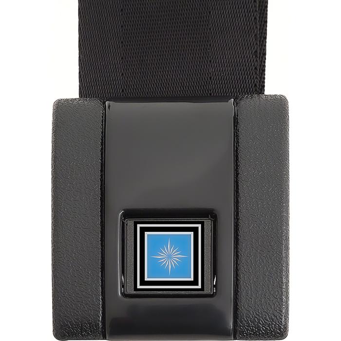 OER 1968-72 GM, Retractable Seat Belts, Silver Blue Button, Black Belts, LH & RH, Pair *R194: