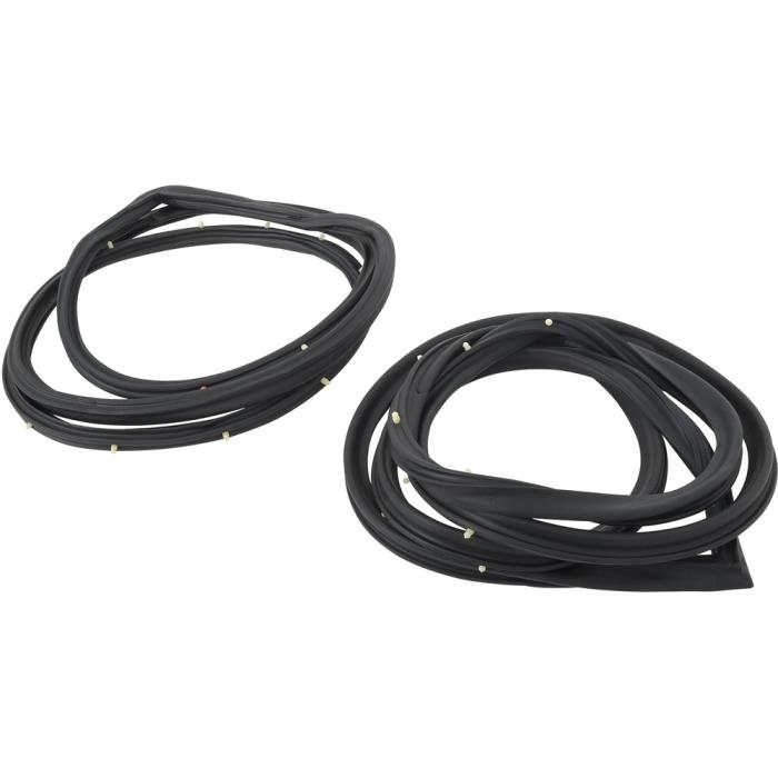 Reproduction of the original front door frame weatherstrip that installs on the outer frame of the door on 1968-1974 Nova and 1973-74 GM X-body 4 door sedan models. Manufactured in the correct configuration which allows easy installation when replacing the worn out or missing original weatherstrip. This weatherstrip seals the door frame from the top of the roof line to the windshield pillar post area around the door. Sold in pairs. Includes RH and LH door frame weatherstrip.