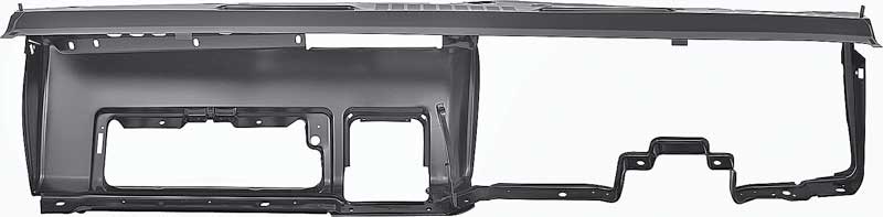 Reproduction of the original complete dash panel assembly for 1969-1972 Nova models. Each panel is manufactured in quality stamped steel to factory specifications, replicating the original GM dash panel. Features strong reinforcements and correct placement of the openings for the instrument carrier, ashtray, glove box, side air vent, defrost vents, and the center A/C vent when required. Also includes pre-punched holes for the instrument panel molding and dash pad mounting clips. Finished in black EDP coating for rust and corrosion protection.