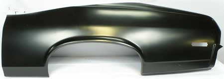 Reproduction of the original-style quarter panel skin designed for use on 1970-72 Chevrolet Nova, and 1971-72 Pontiac Ventura models. This panel is an excellent solution for repairing rust, dents, or minor damage around the wheel well area when replacing the full quarter panel is not necessary. Each panel is manufactured in quality stamped steel to factory specifications for an authentic appearance and fit. The quarter panel skin extends to the top crease of the original quarter panel and is die-cut to run from the door jamb to the bumper area.