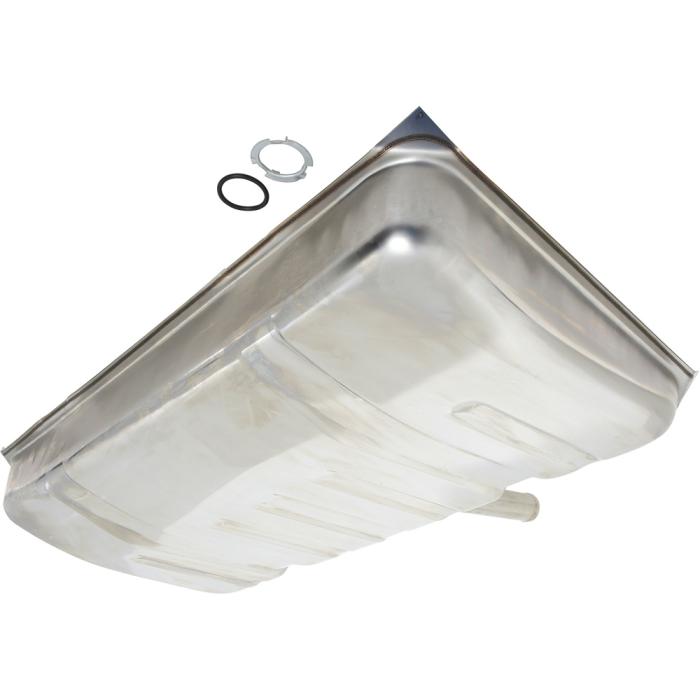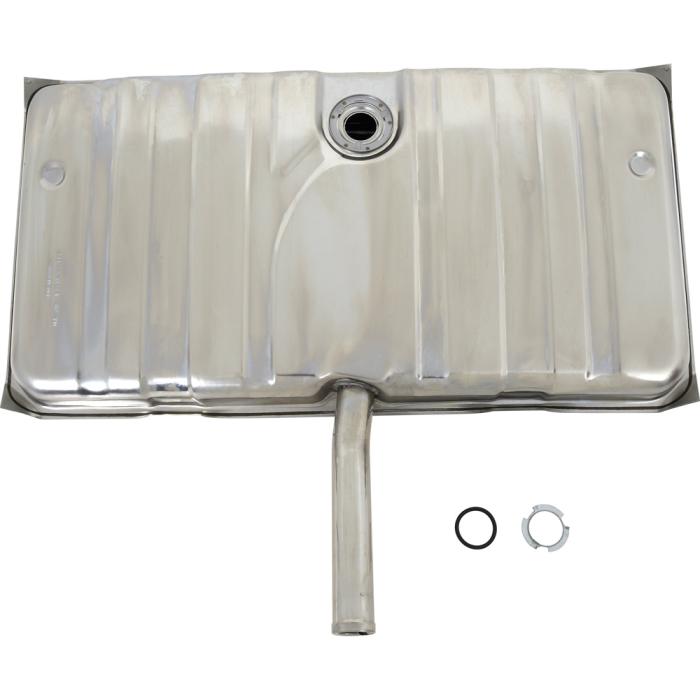 Correct reproduction of the original fuel tank designed for with 1971-1972 Chevrolet Nova, Pontiac Ventura models without EEC (evaporative emissions control vapor recovery system). This reproduction fuel tank is manufactured in stainless steel and includes the fuel sender lock-ring and o-ring gasket for a complete installation. This is a 18 gallon fuel tank that replaces the old tank perfectly. Note: Fuel tank sending unit available separately.