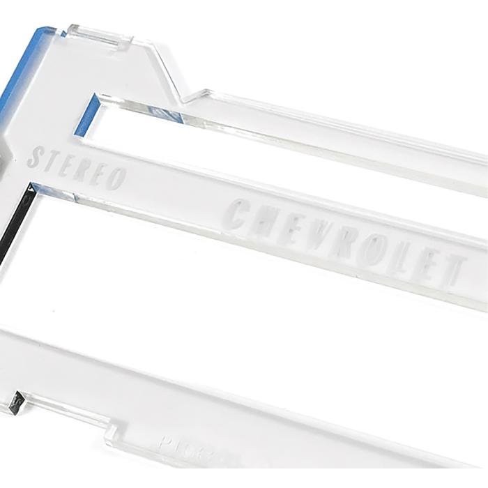 In dash AM radio with 8 track tape player lens each clear acrylic with white writing & blue light reflector. Replace the old faded lens with this new one. This lens has white and blue lettering. Freshen up your radio to make it look new again. It fits various 1971-1975 Chevrolet Camaro, Nova, Chevelle, Impala or Monte Carlo models.