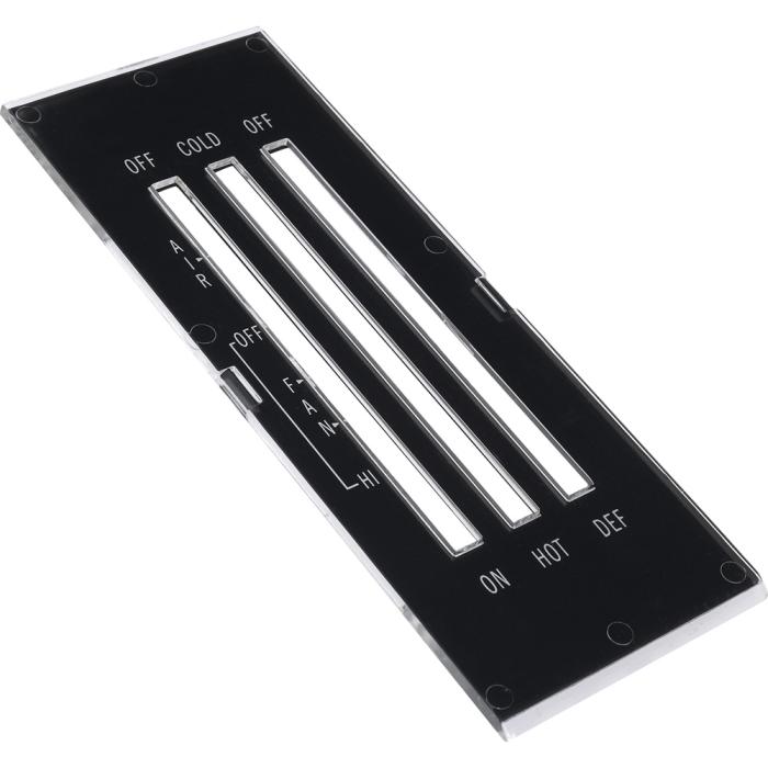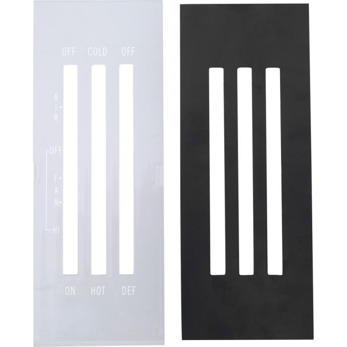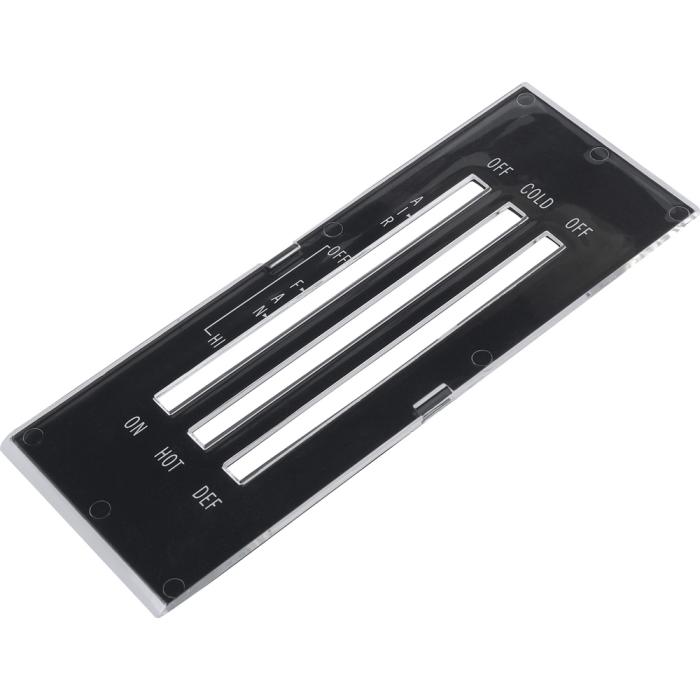 OER 1973-74 Nova, Ventura, Apollo, Omega, Heater Control Lens, w/o AC, with Black Backing Paper, DEF, White Font 6273378