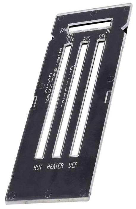 Correct Restorer's Choice reproduction of the original heater control lens for 1973-74 Nova models with air conditioning. Each lens is manufactured in quality acrylic lens material using injection molded process. Features precision screened translucent white lettering in the correct font style, and with the correct wording, for an authentic original appearance. Features the correct DEF wording for the defrost mechanism. Included with each lens is a die-cut automotive-grade black paper backing plate, as original. This lens is the premier lens to use when details are important to the restoration. Replaces lens on OE heater control assembly 6273372. Can be installed on OER part # 6273372C reproduction heater control assembly.