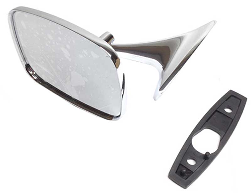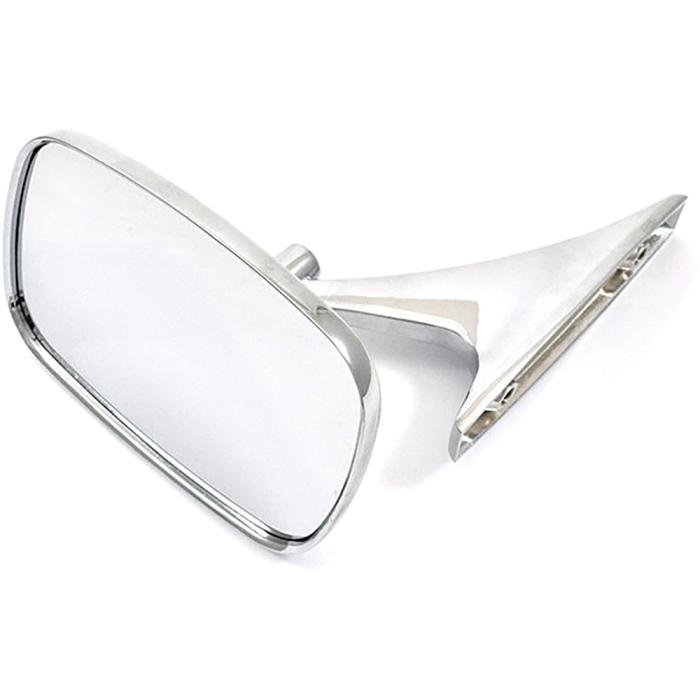 Reproduction of the original outer door mirror designed for use on various 1973-77 Buick, Chevrolet, and Oldsmobile models. Each mirror is manufactured in die-cast zinc and chrome plated matching the original in design, appearance, and fitment. This mirror mounts with 2 studs. If you don't want to drill holes in the door, refer to part number 9826594 that uses a flat bracket to mount the mirror. This mirror includes mounting hardware. Replaces original GM part number # 9414194. For use on LH drivers door.