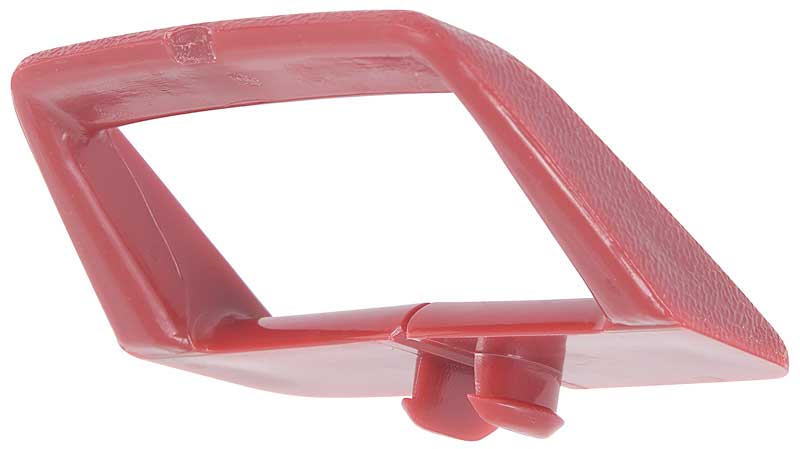 Reproduction of the original seat belt shoulder harness retainer for 1974-80 various GM models including many of the popular models throughout the GM line. This is the seat belt retainer that attaches to the upper outer side of the seat and allows the seat belt webbing to pass through and stay secure. Manufactured in injection molded ABS in the correct Firethorn Red color for an exact replacement. Sold individually.