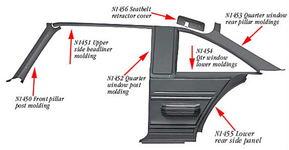 Reproduction of the original interior pillar post moldings designed for use on 1975-79 Nova and GM X-body two door models. Each molding is Injection molded as original and will replace the damaged, cracked or missing original. Sold in pairs. Includes RH and LH moldings.