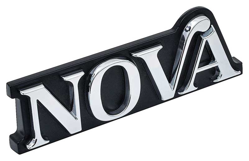 Reproduction of the original die-cast ?Nova? name plate grill emblem for 1975 standard Chevrolet Nova models. Features the correct color black background, font style and correctly placed mounting studs. Each emblem includes the correct bracket and mounting hardware for installation. Not for SS or Rally models.