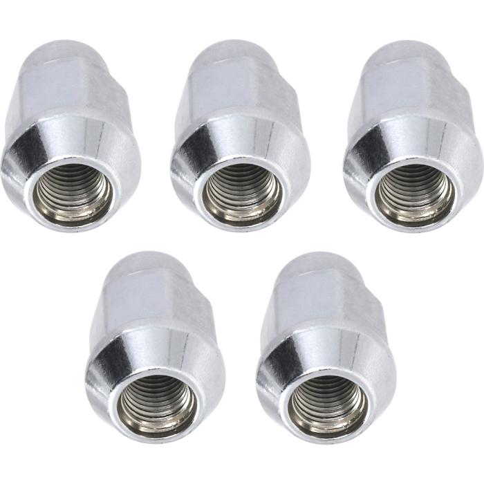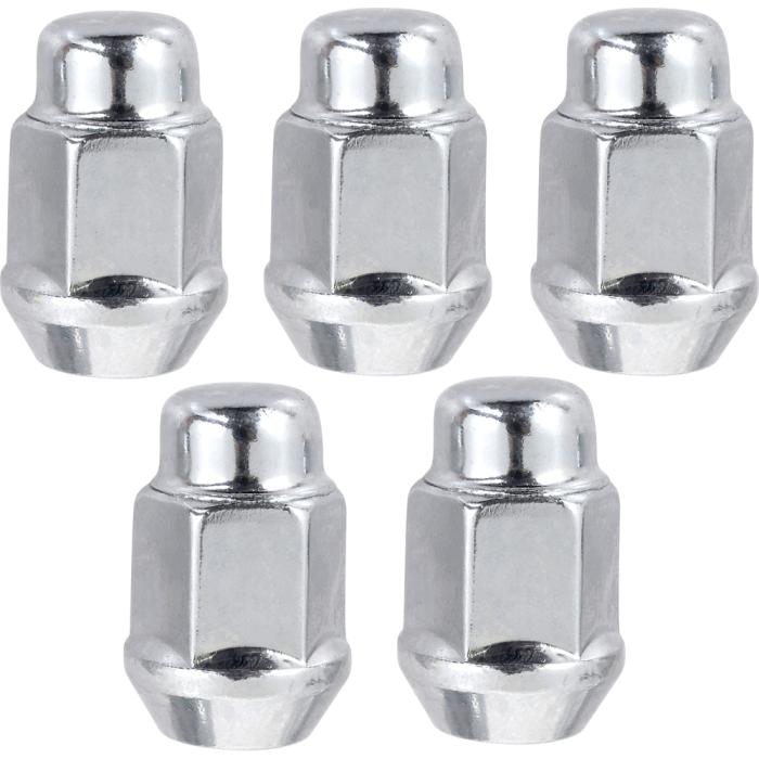 This specially designed lug nut set is made to last a lifetime. Each nut is identified by size directly on the head and case hardened completely through.The thread strength meets or exceeds OEM specifications. Sets include 5 lug nuts. Fits a variety of vehicle applications and wheel types. Measure approx. 1-3/8" tall. 3/4" chrome-plated hex head design. Sold as a set of 5 nuts.