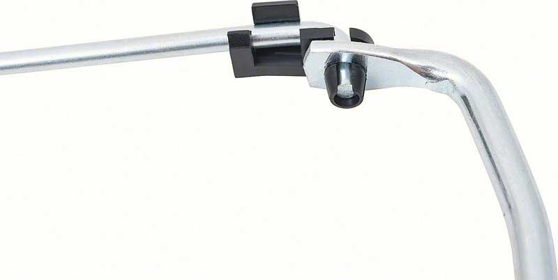 Reproduction of the clip that retains the two inner door lock rods. This nylon clip joins the horizontal rod from the door latch with the verticle rod that the door lock knob screws on to. Sold individually. One required per door. Fits into a 1/4" hole and secures a 5/32" rod. LH offset.