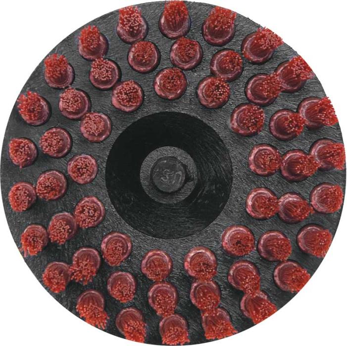 Use the drill brush with any drill. The red brush is heavy duty with very stiff bristles and is meant for intense scrubbing of hard surfaces. Use it to remove heavy grease, grime or loose paint.
