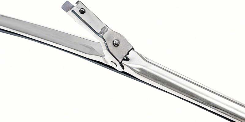 Reproduction of the original 15" "TRICO Style # PR-15-2W" wiper blades designed for a wide variety of classic vehicles including GM, Ford, Chrysler, Studebaker, Mercury, AMC, and International models. Each blade features stainless steel construction and is loaded with a period-correct TRICO RF-15 style insert with a stainless steel vertebra and long-life rubber wiping edge. Designed after the original latch-lock release TRICO blades of the era, originally identified as TRICO part # PR-15-2W, later superseded to part # 33-150. Features a low silhouette design that resists wind-lift at high speeds. Fits arms with 7mm wide bayonet-style ends. Sold as a pair. For refills, use part # 3819074.