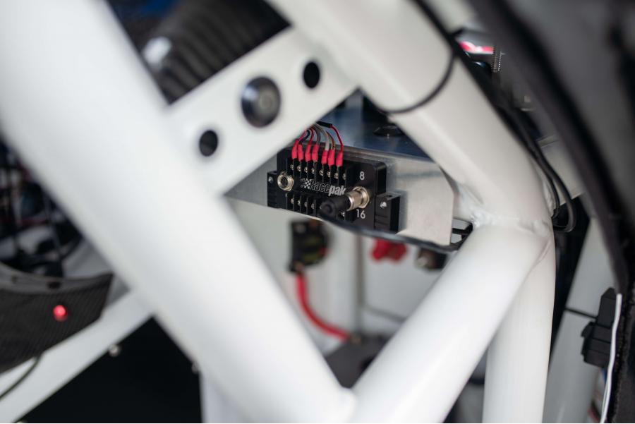 The Racepak Switch Module provides the ability to use existing switches in conjunction with a SmartWire module. Switches are connected to the spade connectors of the Switch Module, and switch data is routed to the SmartWire via a single cable. Adding a second Switch Module is quick and easy, through the use of a short jumper cable between the two modules.