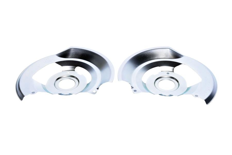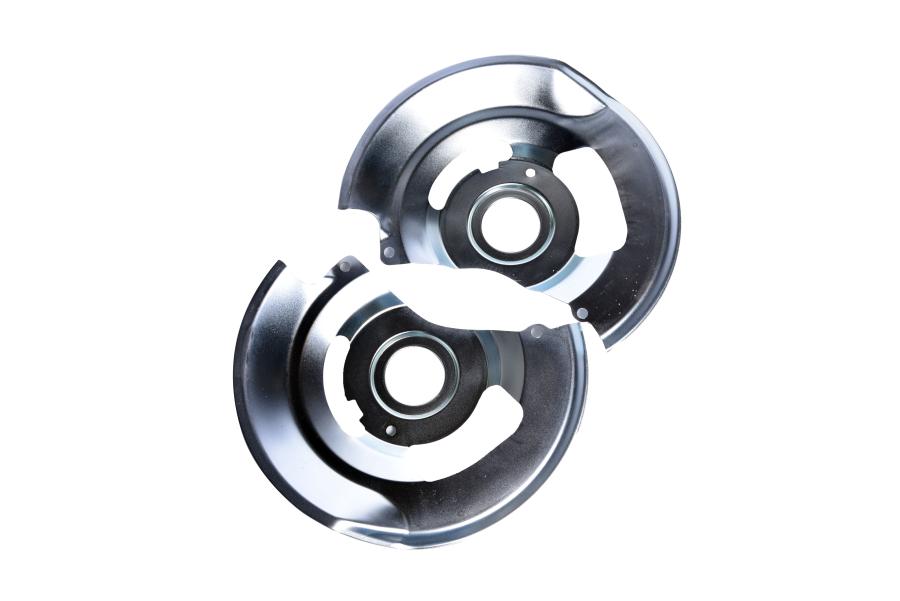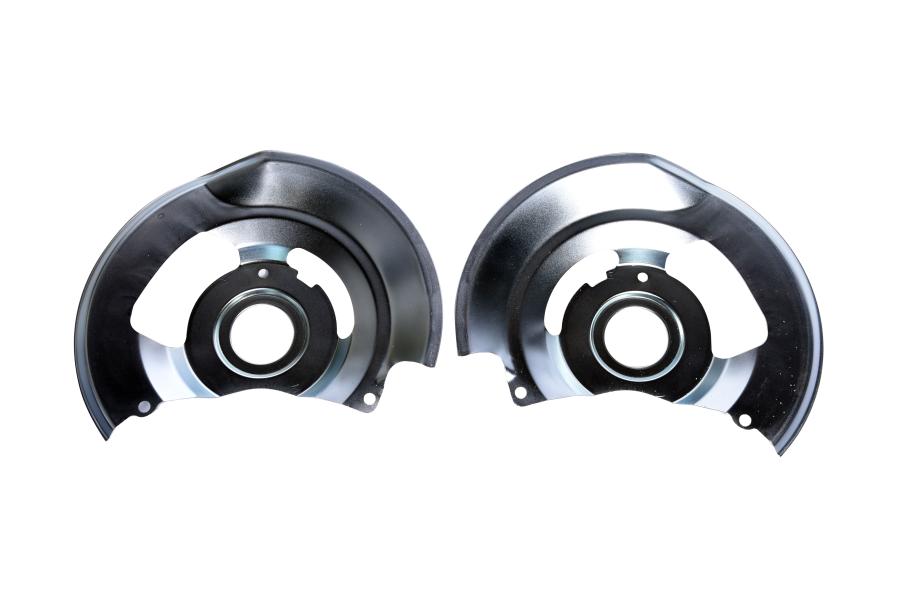 Instructions: Safely raise and support the vehicle. Remove the front wheels and brake calipers, then take off the brake rotors. Unbolt and remove the old backing plates. Position the new backing plates in place, secure with factory hardware, and reassemble the brake system. Confirm clearance and proper fit before road testing.